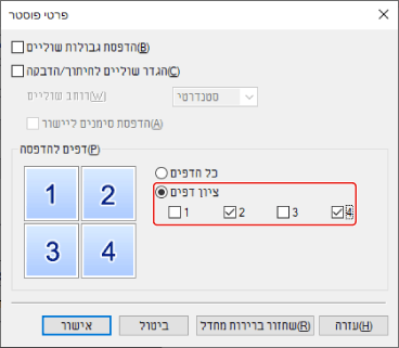 תיבת דו-שיח [פרטי פוסטר] > [דפים להדפסה] > [ציון דפים]: [2] ו-[4]
