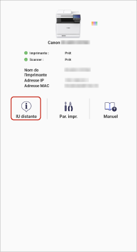 Vous pouvez utiliser cette application pour afficher un écran de fonctionnement équivalent au panneau de commande de l’imprimante sur le smartphone.