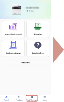 Vous pouvez afficher le code QR depuis [Portail mobile] sur l’imprimante.