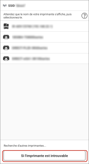 ] (Ajout./Commuter) > [Enreg. imprimante] > [Si l'imprimante est introuvable] > [Configurer le réseau sans fil de l'imprimante]
