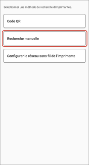 Enreg. imprimante | | Sélectionner la méthode de recherche | | Recherche manuelle |