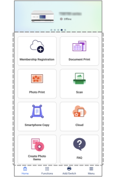 Anda dapat menyesuaikan menu di layar beranda untuk mengingat fungsi yang sering digunakan dengan mudah saat menggunakan pencetak yang berbeda di lokasi seperti di rumah atau kantor.