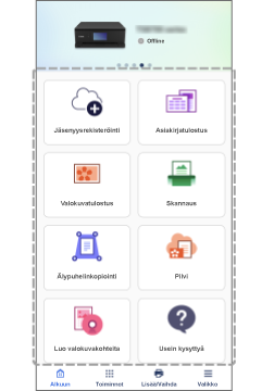 Älypuhelimesta voi tulostaa dataa pilvitallennuspalveluun. Tulostimella tai älypuhelimella skannatun datan voi myös tuoda pilvitallennuspalveluun.