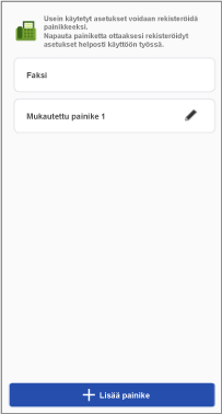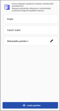 Asetuksia voi myös räätälöidä ja usein käytetyt asetukset voi tallentaa painikkeiksi. Tallennettuja painikkeita voi käyttää kaikissa tätä toimintoa tukevissa tulostimissa.