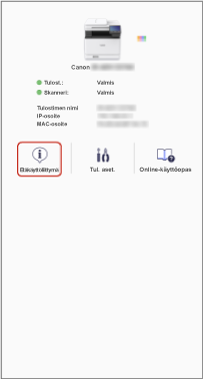 Muut käyttäjät eivät voi käyttää samaa tulostinta, kun tätä toimintoa käytetään. Muista napauttaa [Lopeta], kun lopetat.