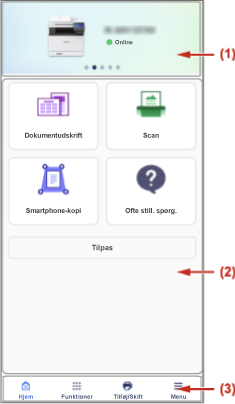 De viste funktioner kan variere afhængigt af den printer, der er valgt i printervisningsområdet, og det miljø, hvor denne app bruges.