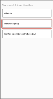 Hvis du ikke kan finde den ønskede printer, skal du forbinde printeren med en QR-kode eller registrere printeren ved at søge efter dens IP-adresse eller DNS-navn.