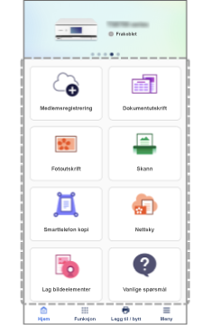 Du kan tilpasse menyen på startskjermen, slik at ofte brukte funksjoner huskes når du bruker forskjellige skrivere på steder som hjemme eller på kontoret.