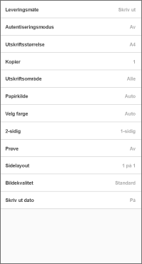 1. på [Utskriftsinnstillinger]-skjermbildet, trykk på [Autentiseringsmodus].