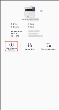 Wyświetlanie Remote UI (Zdalny interfejs użytkownika) drukarki na smartfonie