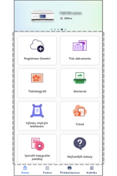 Nabídku na domovské obrazovce si můžete přizpůsobit, abyste mohli snadno vyvolat často používané funkce, když používáte různé tiskárny v umístěních, jako je domov nebo kancelář.