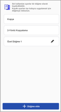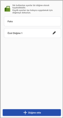 Ayrıca ayarları özelleştirebilir ve sık kullanılan ayarları düğme olarak kaydedebilirsiniz. Kayıtlı düğmeler, bu işlevi destekleyen tüm yazıcılarda kullanılabilir.