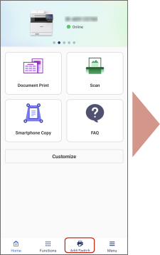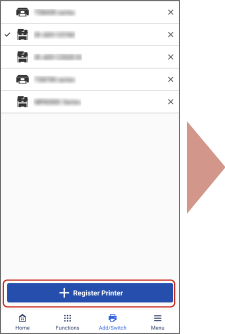 ] (Add/Switch) > [Register Printer] > [If Printer Cannot be Found] > [Configure Printer Wireless LAN]