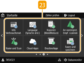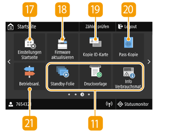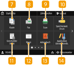 Bildschirm Startseite (MF657Cdw / MF655Cdw / MF651Cw / MF553dw / MF552dw / MF455dw / MF453dw)