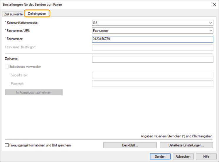 Zeigen Sie die Registerkarte [Ziel eingeben] an.