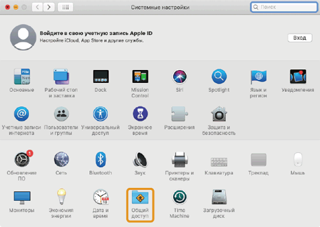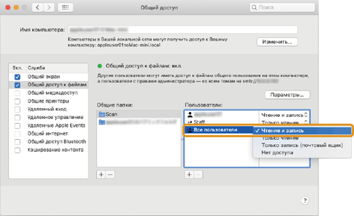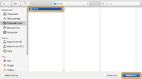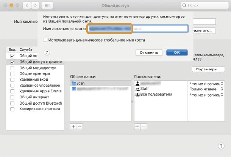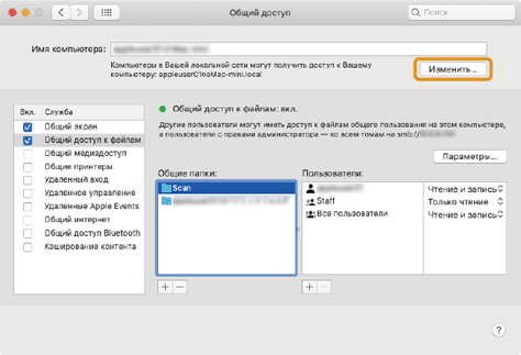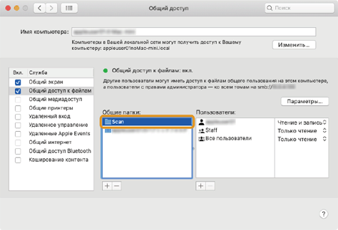 Сканирование и отправка в общую папку на компьютере (macOS)