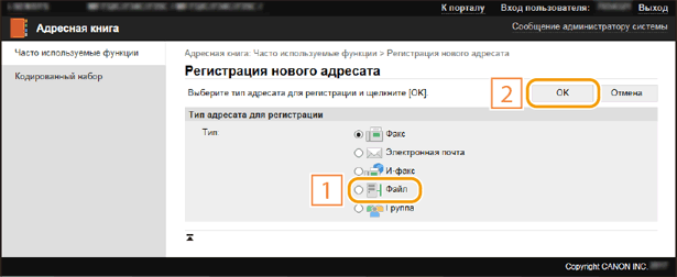 Шаг 2. Регистрация общей папки в адресной книге аппарата