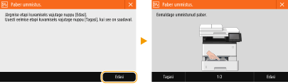 Paberiummistuse korral kuvatakse ekraanil teade <Paber ummistus.>. Vajutage lihtsate lahenduste kuvamiseks klahvi <Edasi>.