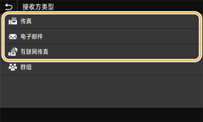视要注册的接收方的类型而定,选择 <传真号码>、<电子邮件地址> 或 <互联网传真地址>。