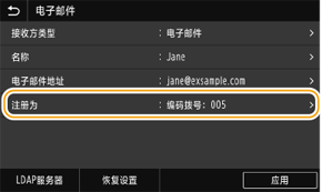输入要在地址簿中注册的名称,然后选择 <应用>。