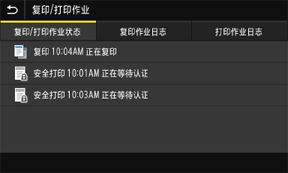 显示所选项目的当前状态。下面以 <复印/打印作业> 画面为例进行说明。