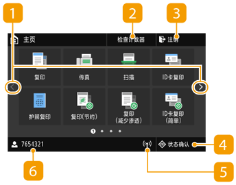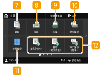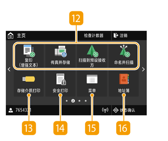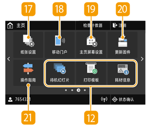 显示屏上出现主页画面或设置画面,可启动复印和扫描等功能。也可以使用显示屏来检查错误讯息和本机的工作状态等信息。该屏幕也是触控面板,因此可以通过直接触碰屏幕来执行操作。