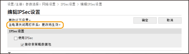 显示“主电源关闭再打开后,更改将生效。”讯息后,关闭本机电源,然后在 10 秒钟之后重新开启本机电源。