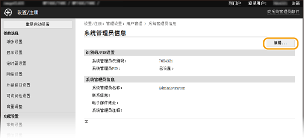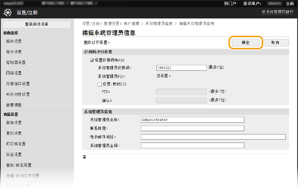 选择 [系统管理员模式],输入 [系统管理员识别码] 和 [系统管理员PIN],然后单击 [登录]。