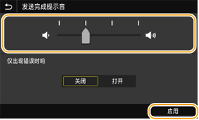 <输入提示音> | 每次按下操作面板上的按键或显示屏上的按钮时发出的确认声音。 | 选择 <打开>(发出提示音)或 <关闭>(不发出提示音),然后转至步骤 3。 |