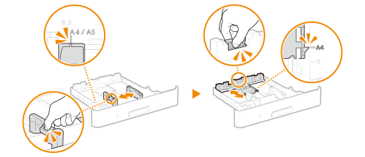 握住解锁杆,移动纸张导板,使突起与要装入的纸张尺寸的索引对齐。