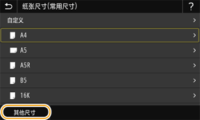 如果未显示装入纸张的纸张尺寸,请选择 <其他尺寸>。