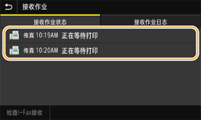 在 <接收作业状态> 选项卡中,选择要转发或删除的文档。