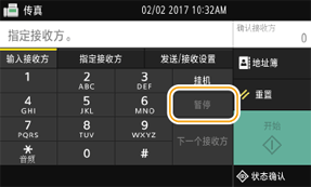 在按照“(国际访问代码)-(国家代码)-(地区代码)-(传真号码)”顺序指定接收方号码时,请在号码之间输入暂停。