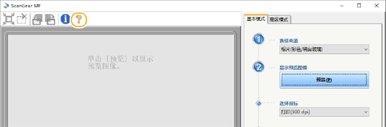 选择 ScanGear MF 或 WIA。如果选择 ScanGear MF,则可以进行详细扫描设置。