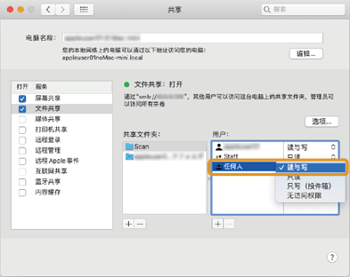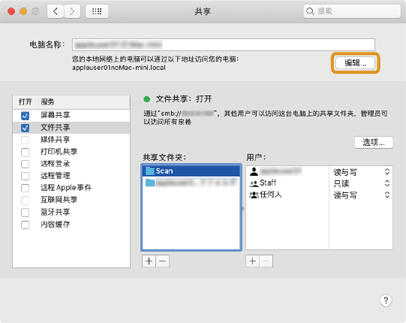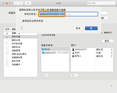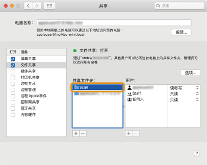 可以让本机访问扫描数据并将其发送到 Mac 上的共享文件夹。