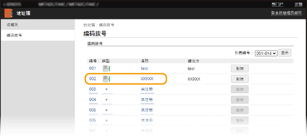 对于显示“未注册”的项目,单击 [编号]、[类型] 或 [名称]。