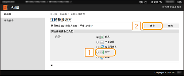 在 <指定接收方> 选项卡中选择 <地址簿>。
