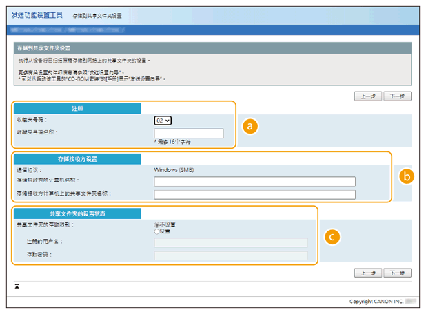 使用 发送功能设置工具 时,请将扫描文档注册到地址薄的 <收藏夹> 中。从下拉菜单中选择一个未使用的号码。