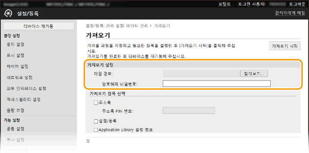 가져오기를 시작하기 전에 인쇄 또는 기타 프로세스가 진행 중이 아닌지 확인하십시오. 또한 가져오는 동안 기기를 작동하려고 하지 마십시오.