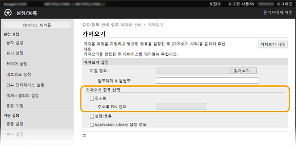 다른 Canon 기기에서 주소록 가져오기(리모트 UI)