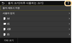 이 버튼은 용지 카세트와 수동 급지대에 적재되는 용지의 크기 및 종류를 지정하는 데 사용됩니다.
