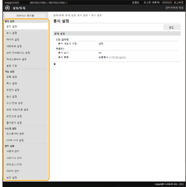 컴퓨터의 웹 브라우저를 사용하여 기기의 설정을 변경할 수 있습니다.