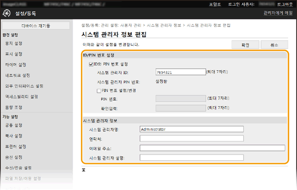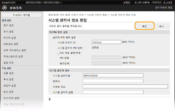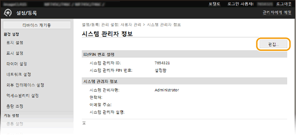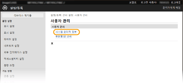 [시스템 관리자 모드]를 선택하고 [시스템 관리자 ID]와 [시스템 관리자 PIN 번호]를 입력한 다음 [로그인]을 클릭합니다.