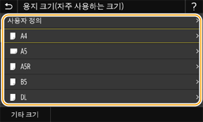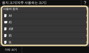 적재된 용지 크기가 표시되지 않는 경우 <기타 크기>를 선택합니다.
