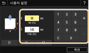 자주 사용하는 용지 크기가 미리 설정되어 있습니다. 용지를 적재할 때 용지 크기를 설정하려면 아래 단계를 따르십시오.