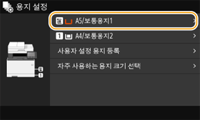 A5 크기 용지를 적재한 경우 <A5R>을 선택합니다.