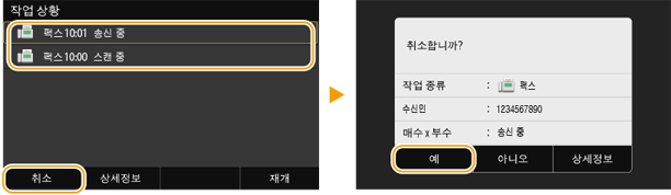 아래 단계에 따라 팩스 전송 또는 복사 작업을 취소하십시오.
