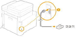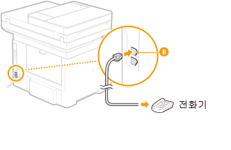 외부 전화기 또는 자동 응답기를 연결하는 경우: 전화기의 전화선을 기기의 외부 전화 잭