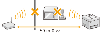 기기와 무선 LAN 라우터 또는 액세스 포인트 사이에 벽과 같은 장애물이 있습니까?