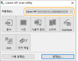 ScanGear MF 또는 WIA를 선택합니다. ScanGear MF를 선택하면 세부 스캔 설정을 지정할 수 있습니다.